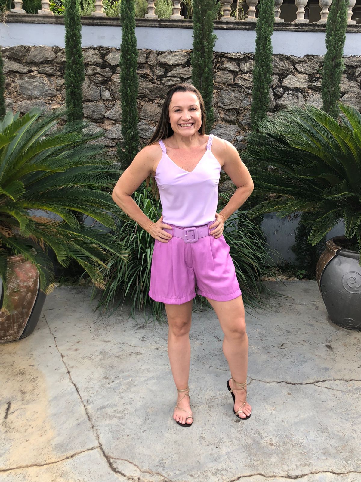 Regata creponada fresca e facil de combinar, vai bem com todos os looks.